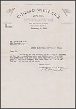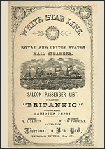 Our collection of Ephemera consists of many thousands of pieces covering the 1850s through 1934, and includes Posters, Broadsides, Advertisements, Brochures, Passenger Lists, Deck Plans, The Atlantic Extra, Atlantic Daily Bulletin, Ocean Times, Ticklish Times, White Star Magazine, Log Abstracts, Postcards, Envelopes, Stationary, Menus, Calendars, Leaflets, Sailing Schedules, Newspaper Sailing Ads beginning 1849, and much more.